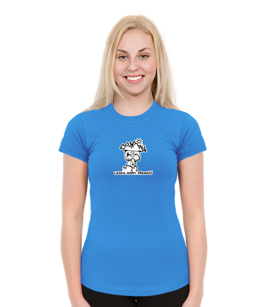 Dámská trička SKRATDA NEW Lyžařská kolekce pro ženy s potiskem 1128 LÁSKA HORY PŘENÁŠÍ v barvě CAPRI BLUE