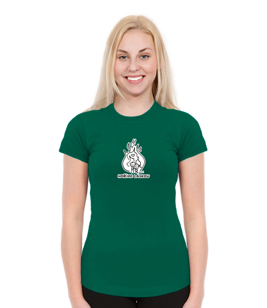 Dámská trička SKRATDA NEW Lyžařská kolekce pro ženy s potiskem 1208 HOŘÍME LÁSKOU v barvě UNIVERSITY GREEN