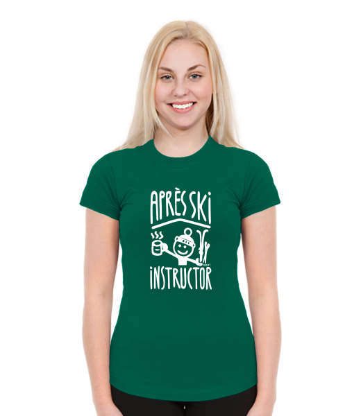 Dámská trička SKRATDA NEW Lyžařská kolekce pro ženy s potiskem 1367 APRÉS SKI INSTRUCTOR v barvě UNIVERSITY GREEN