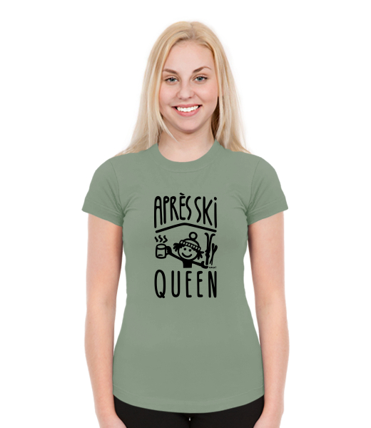 Dámská trička SKRATDA NEW Lyžařská kolekce pro ženy s potiskem 1371 APRÉS SKI QUEEN v barvě OLIVA