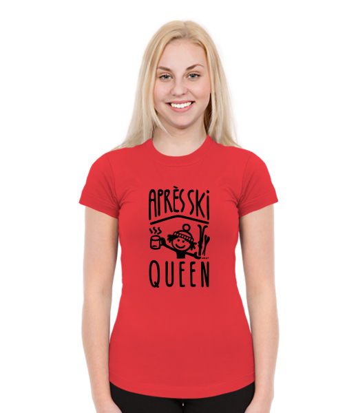 Dámská trička SKRATDA NEW Lyžařská kolekce pro ženy s potiskem 1371 APRÉS SKI QUEEN v barvě RED