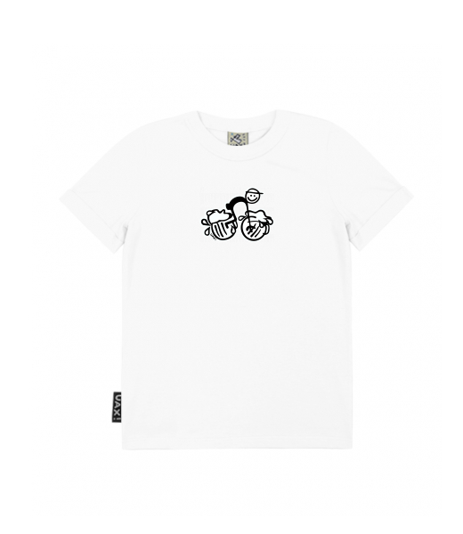 Střih trička a zpracování: Klasický rovný volný střih trička (ne oversize). Lem průkrčníku je obšit pružným žebrovaným lemem. Dvojité švy u krku, na rukávech a spodním lemu. Ohnuté rukávy. Tričko má v bočním švu všitou tkanou etiketu UAX.