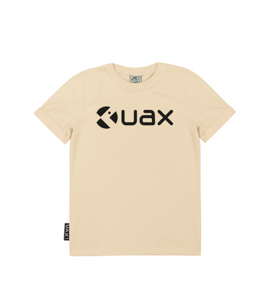 Střih trička a zpracování: Klasický rovný volný střih trička (ne oversize). Lem průkrčníku je obšit pružným žebrovaným lemem. Dvojité švy u krku, na rukávech a spodním lemu. Ohnuté rukávy. Tričko má v bočním švu všitou tkanou etiketu UAX.