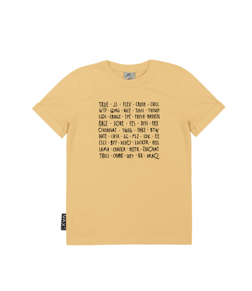 Vyrábíme udržitelné oblečení UAX! - ručně šité v Česku uaxŽeny uaxLyžařská kolekceTričkaSKRATDA OHpotisk 1372 - DĚTSKÝ SLANGMUSTARD