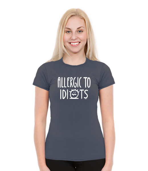 Dámské tričko BALI WOMEN Lyžařská kolekce pro ženy s potiskem 1354 ALLERGIC TO IDIOTS v barvě GRAY INK