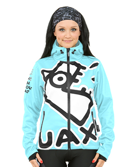Originální dámská softshellová bunda s kapucí a potiskem UAX! Fish z vodě a větru odolného materiálu. Vodě odolné zipy, odvětrání v podpaží a elastické rukavičky s dírou na palec.