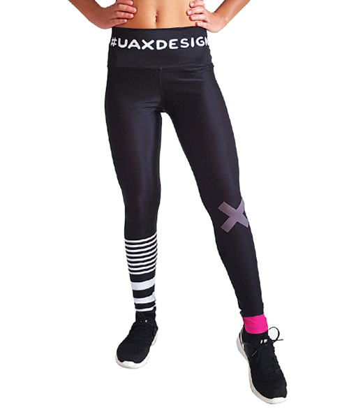 Speciální povrchová úprava proti oděru (odolnost 5). Menší pružnost do šířky a větší pružnost do délky. Při tisku a po natažení materiál neprosvítá bílá. Barvy jsou brilantnější. Top materiál určený pro sport. Je kompresní, zabraňuje mikro otřesům svalů a tím oddaluje únavu. Dámské sportovní legíny v originálním designu UAX! Pohodlné sportovní legíny vhodné na cvičení jógy, pilátes, tanec a pod. Sportovní legíny UAX! mají pohodlný přiléhavý střih, který kopíruje postavu. Legíny jsou vyrobeny z vysoce kvalitního, rychleschnoucího materiálu Sinapsi Endurance 210g/qm. Sportovní legíny mají vysoký pas, který se dá snížit ohrnutím. Dámské sportovní legíny v originálním designu UAX! mají vysokou kvalitu zpracování a jsou vyrobeny v ČR.