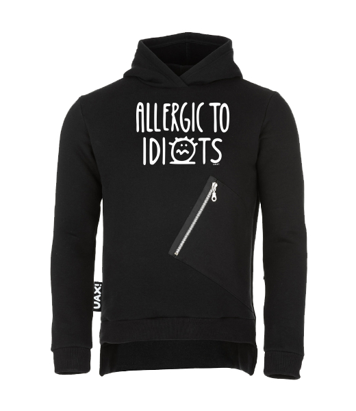 Vyrábíme udržitelné oblečení UAX! - ručně šité v Česku uaxŽeny uaxVšechny produktyMikinyASYMETRICKÁ MIKINA URBANpotisk 1354 - ALLERGIC TO IDIOTSBLACK