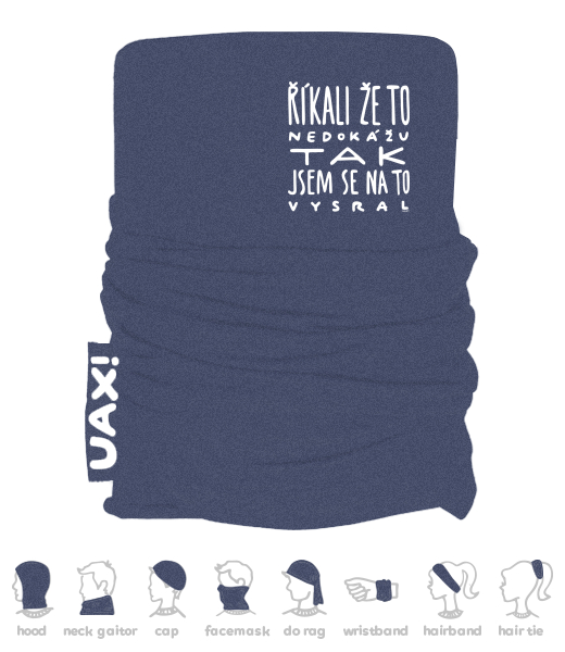 Multifunkční bavlněný šátek s potiskem UAX! Vyrobeno z 100% bavlny, na přední straně možnost výběru potisku. Výběr z mnoha barev. Multifunkční bavlněné šátky jsou šity a potisknuty sítotiskem v České republice!