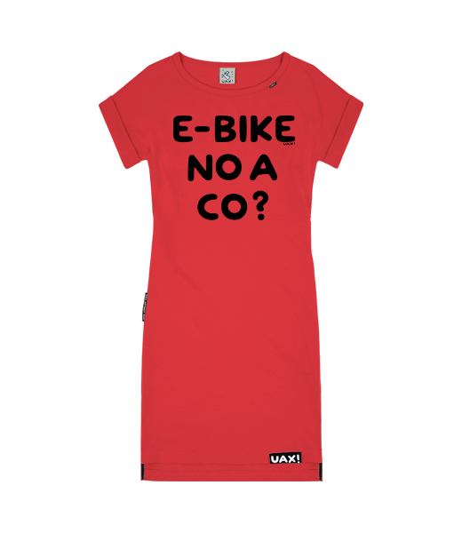 Dámské šaty BASIC s potiskem UAX pro ženy s potiskem 1292 E-BIKE NO A CO? v barvě RED