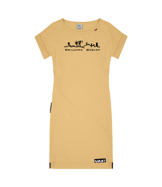 Vyrábíme udržitelné oblečení UAX! - ručně šité v Česku uaxŽeny uaxVšechny produktyŠatyDÁMSKÉ ŠATY BASICpotisk 1355 - MILUJEME BESKYDY 1MUSTARD