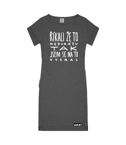 Dámské šaty BASIC s potiskem UAX pro ženy s potiskem 1366 ŘÍKALI ŽE TO NEDOKÁŽU TAK JSEM SE NA TO VYSRAL v barvě GRAFIT