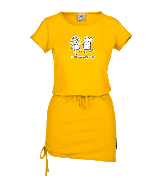 Vyrábíme udržitelné oblečení UAX! - ručně šité v Česku uaxŽeny uaxVšechny produktyŠatyDÁMSKÉ ŠATY URBANpotisk 1049 - WISH YOU WERE BEERGOLDEN CREAM