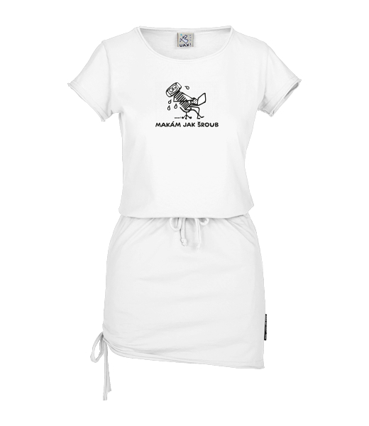 Vyrábíme udržitelné oblečení UAX! - ručně šité v Česku uaxŽeny uaxVšechny produktyŠatyDÁMSKÉ ŠATY URBANpotisk 1061 - MAKÁM JAK ŠROUBWHITE