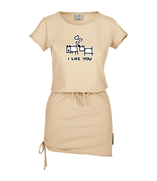 Vyrábíme udržitelné oblečení UAX! - ručně šité v Česku uaxŽeny uaxVšechny produktyŠatyDÁMSKÉ ŠATY URBANpotisk 1066 - I LIKE YOUCARAMEL