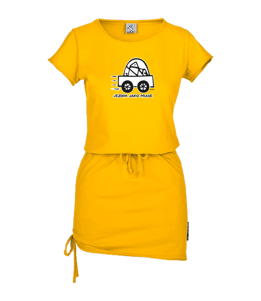 Vyrábíme udržitelné oblečení UAX! - ručně šité v Česku uaxŽeny uaxVšechny produktyŠatyDÁMSKÉ ŠATY URBANpotisk 1072 - JEZDÍM JAKO PRASEGOLDEN CREAM