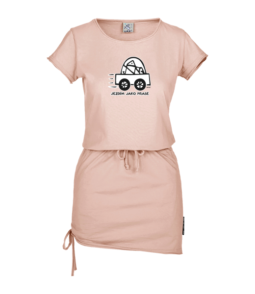 Dámské šaty URBAN s potiskem pro ženy s potiskem 1072 JEZDÍM JAKO PRASE v barvě PEACH