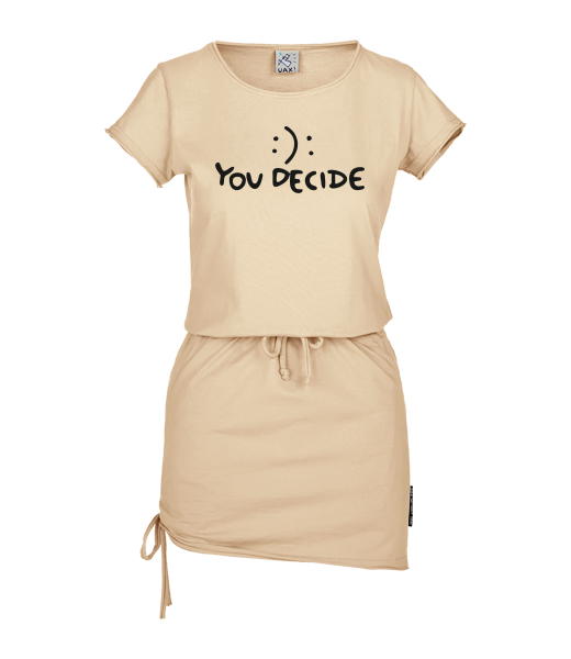 Vyrábíme udržitelné oblečení UAX! - ručně šité v Česku uaxŽeny uaxVšechny produktyŠatyDÁMSKÉ ŠATY URBANpotisk 1078 - YOU DECIDECARAMEL