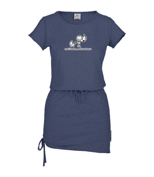 Dámské šaty URBAN s potiskem pro ženy s potiskem 1081 STAČÍ KAPKA A UŽ TO ŤAPKÁ v barvě JEANS