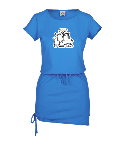 Vyrábíme udržitelné oblečení UAX! - ručně šité v Česku uaxŽeny uaxVšechny produktyŠatyDÁMSKÉ ŠATY URBANpotisk 1089 - TY VOLE I LOVECAPRI BLUE