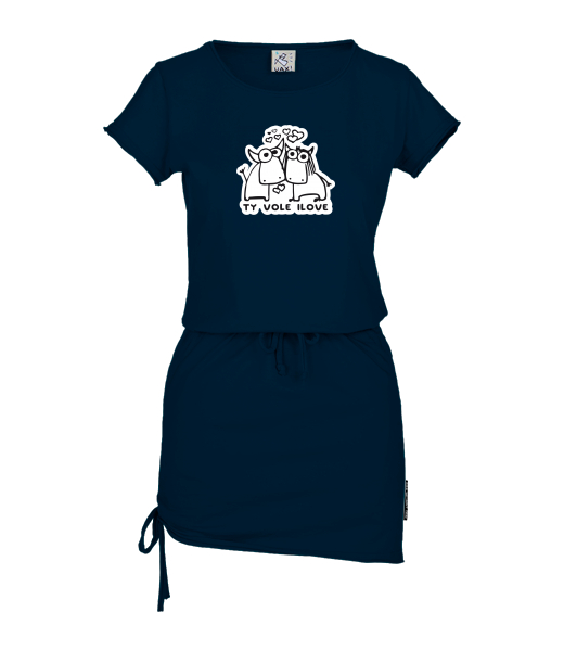Vyrábíme udržitelné oblečení UAX! - ručně šité v Česku uaxŽeny uaxVšechny produktyŠatyDÁMSKÉ ŠATY URBANpotisk 1089 - TY VOLE I LOVEDARK NAVY