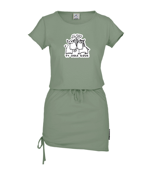 Vyrábíme udržitelné oblečení UAX! - ručně šité v Česku uaxŽeny uaxVšechny produktyŠatyDÁMSKÉ ŠATY URBANpotisk 1089 - TY VOLE I LOVEOLIVA