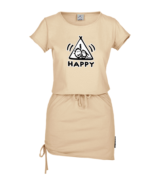 Dámské šaty URBAN s potiskem pro ženy s potiskem 1113 HAPPY v barvě CARAMEL