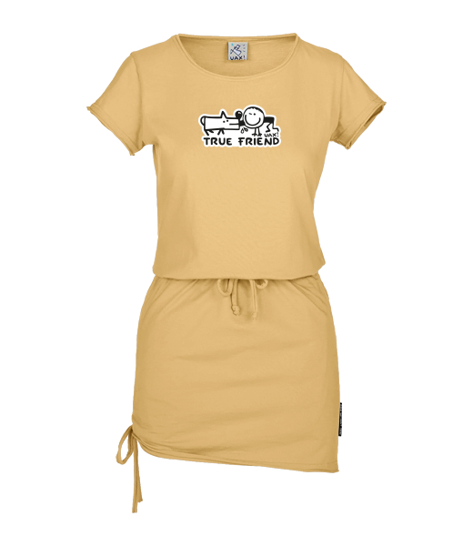 Vyrábíme udržitelné oblečení UAX! - ručně šité v Česku uaxŽeny uaxVšechny produktyŠatyDÁMSKÉ ŠATY URBANpotisk 1123 - TRUE FRIENDMUSTARD