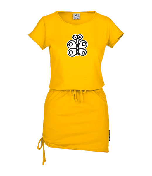 Vyrábíme udržitelné oblečení UAX! - ručně šité v Česku uaxŽeny uaxVšechny produktyŠatyDÁMSKÉ ŠATY URBANpotisk 1154 - MOTÝLGOLDEN CREAM