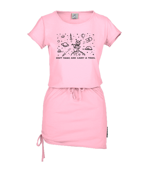 Vyrábíme udržitelné oblečení UAX! - ručně šité v Česku uaxŽeny uaxVšechny produktyŠatyDÁMSKÉ ŠATY URBANpotisk 1156 - DON'T PANIC GALAXYBABY PINK
