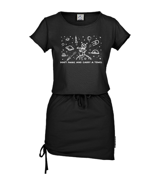 Vyrábíme udržitelné oblečení UAX! - ručně šité v Česku uaxŽeny uaxVšechny produktyŠatyDÁMSKÉ ŠATY URBANpotisk 1156 - DON'T PANIC GALAXYBLACK