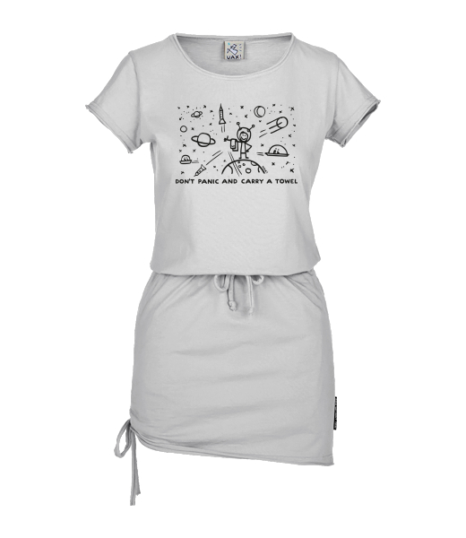 Vyrábíme udržitelné oblečení UAX! - ručně šité v Česku uaxŽeny uaxVšechny produktyŠatyDÁMSKÉ ŠATY URBANpotisk 1156 - DON'T PANIC GALAXYCEMENT