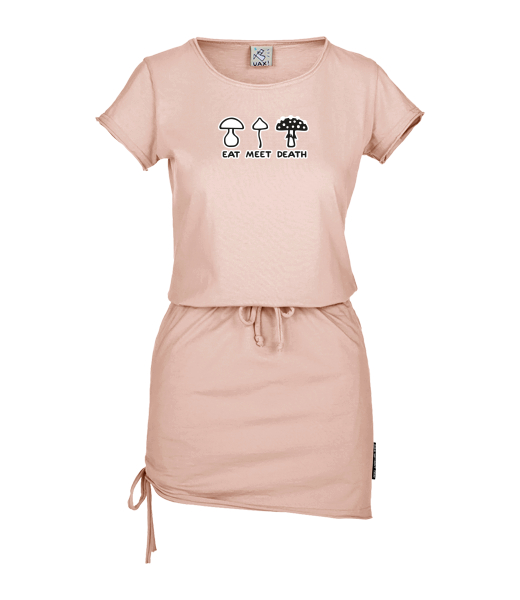 Vyrábíme udržitelné oblečení UAX! - ručně šité v Česku uaxŽeny uaxVšechny produktyŠatyDÁMSKÉ ŠATY URBANpotisk 1177 - EAT MEET DEATHPEACH