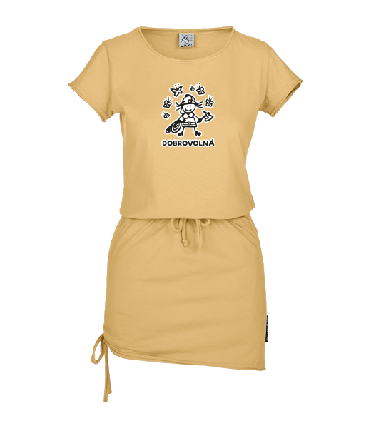 Vyrábíme udržitelné oblečení UAX! - ručně šité v Česku uaxŽeny uaxVšechny produktyŠatyDÁMSKÉ ŠATY URBANpotisk 1183 - DOBROVOLNÁMUSTARD