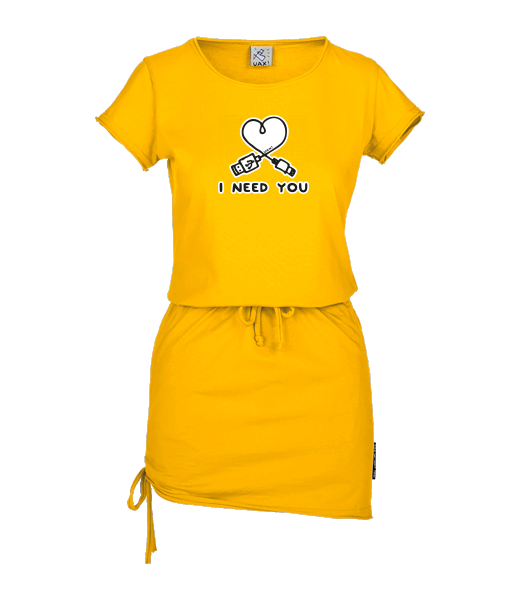 Vyrábíme udržitelné oblečení UAX! - ručně šité v Česku uaxŽeny uaxVšechny produktyŠatyDÁMSKÉ ŠATY URBANpotisk 1206 - I NEED YOU 2GOLDEN CREAM