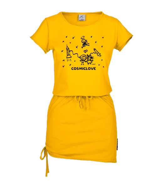 Vyrábíme udržitelné oblečení UAX! - ručně šité v Česku uaxŽeny uaxVšechny produktyŠatyDÁMSKÉ ŠATY URBANpotisk 1207 - COSMICLOVEGOLDEN CREAM