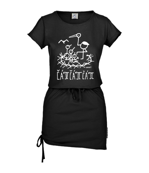 Vyrábíme udržitelné oblečení UAX! - ručně šité v Česku uaxŽeny uaxVšechny produktyŠatyDÁMSKÉ ŠATY URBANpotisk 1379 - ČÁPÍČÁPÍČÁPÍBLACK