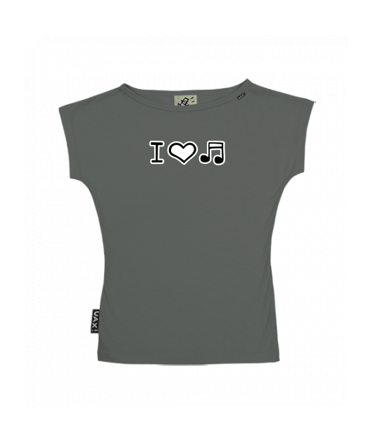 Vyrábíme udržitelné oblečení UAX! - ručně šité v Česku uaxŽeny uaxVšechny produktyTričkaDÁMSKÉ TRIČKO S LODIČKOVÝM VÝSTŘIHEMpotisk 1067 - I LOVE MUSICDARK GRAY