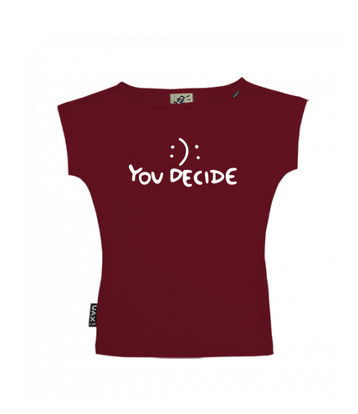 Vyrábíme udržitelné oblečení UAX! - ručně šité v Česku uaxŽeny uaxVšechny produktyTričkaDÁMSKÉ TRIČKO S LODIČKOVÝM VÝSTŘIHEMpotisk 1078 - YOU DECIDEDARK RED