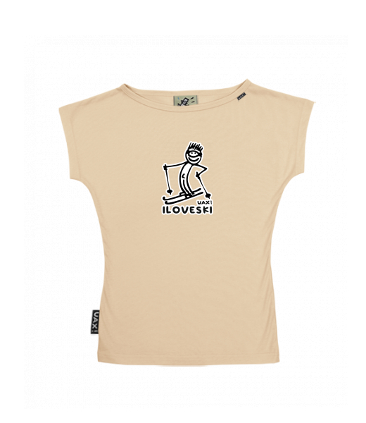 Dámské tričko s lodičkovým výstřihem pro ženy s potiskem 1122 I LOVE SKI v barvě CARAMEL
