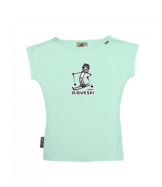 Dámské tričko s lodičkovým výstřihem pro ženy s potiskem 1122 I LOVE SKI v barvě MINT