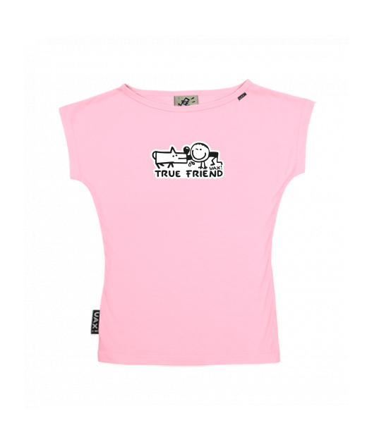 Dámské tričko s lodičkovým výstřihem pro ženy s potiskem 1123 TRUE FRIEND v barvě BABY PINK