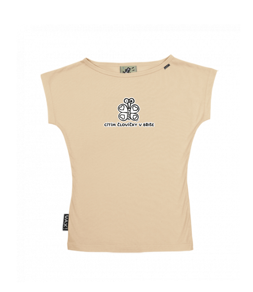 Vyrábíme udržitelné oblečení UAX! - ručně šité v Česku uaxŽeny uaxVšechny produktyTričkaDÁMSKÉ TRIČKO S LODIČKOVÝM VÝSTŘIHEMpotisk 1188 - CÍTÍM ČLOVÍČKY V BŘIŠECARAMEL