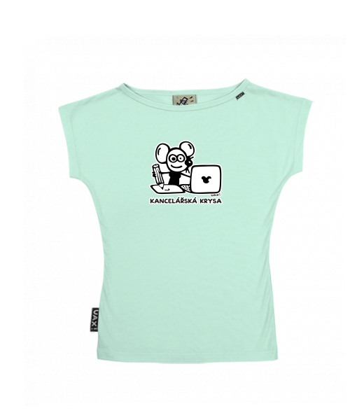 Dámské tričko s lodičkovým výstřihem pro ženy s potiskem 1191 KANCELÁŘSKÁ KRYSA v barvě MINT