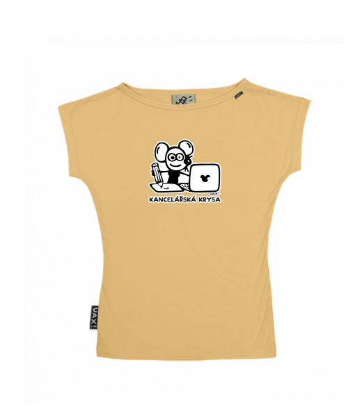 Dámské tričko s lodičkovým výstřihem pro ženy s potiskem 1191 KANCELÁŘSKÁ KRYSA v barvě MUSTARD