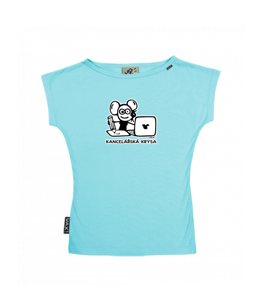Dámské tričko s lodičkovým výstřihem pro ženy s potiskem 1191 KANCELÁŘSKÁ KRYSA v barvě PASTEL BLUE