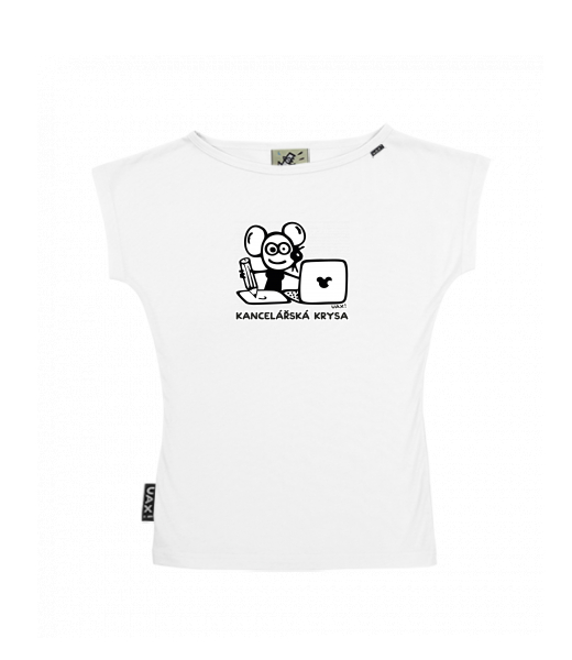 Dámské tričko s lodičkovým výstřihem pro ženy s potiskem 1191 KANCELÁŘSKÁ KRYSA v barvě WHITE
