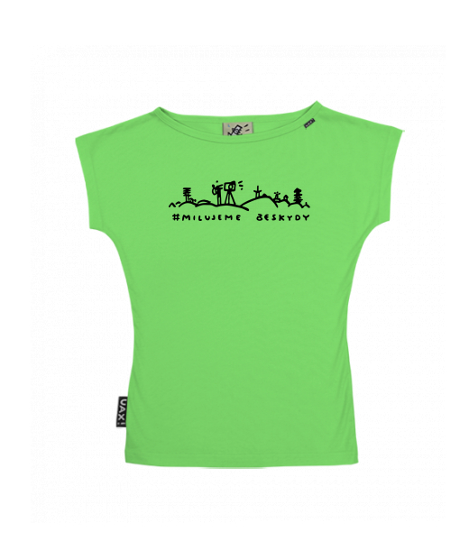 Dámské tričko s lodičkovým výstřihem pro ženy s potiskem 1355 MILUJEME BESKYDY 1 v barvě APPLE