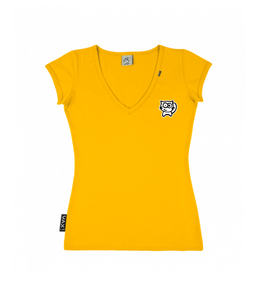 Dámské tričko V-neck pro ženy s potiskem 1143 KOŤÁTKO v barvě GOLDEN CREAM