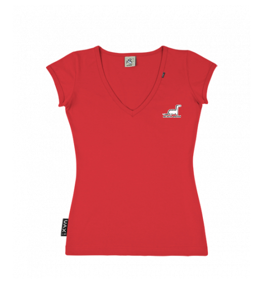 Dámské tričko V-neck delší vyštíhlené tsičko s hlubokým výstřihem do "V"-éčka, zkrácené rukávy.
